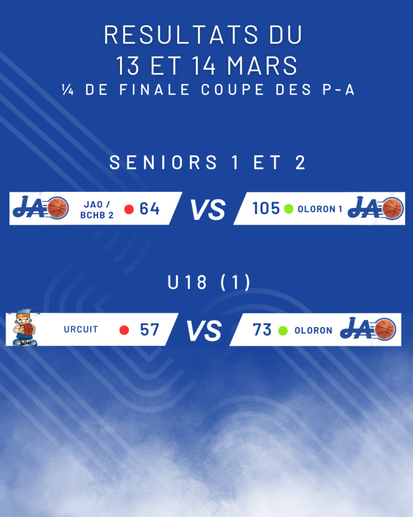 Victoire des U18-1 à Urcuit 73-57 en 1/4 de finale de Coupe des PA.